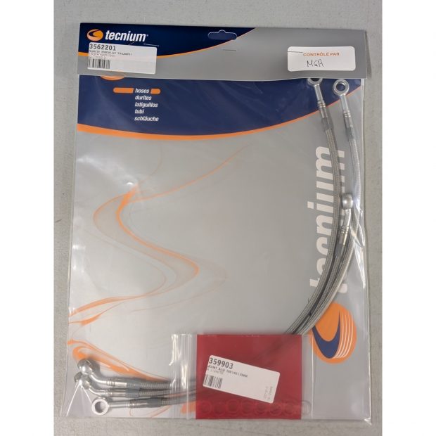 Durites de frein avant "type aviation" de marque SPEED BRAKES (fabriqué par BIHR - TECNIUM) pour TRIUMPH TROPHY 900 93-96 en montage d'origine.