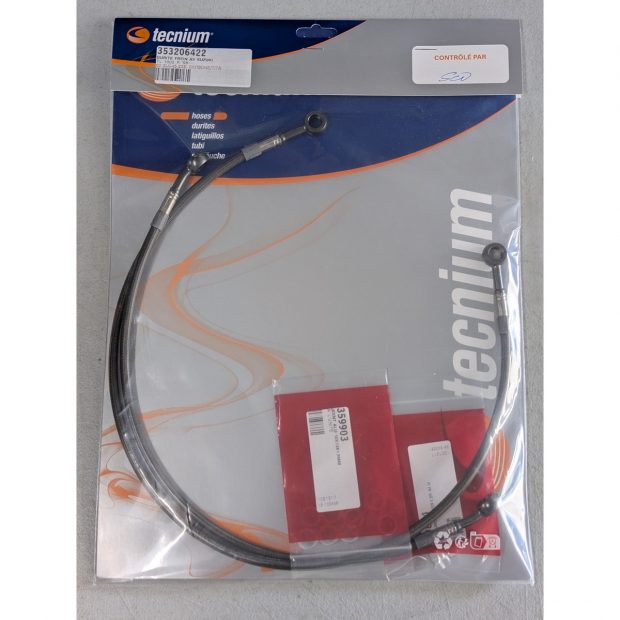 Durites de frein avant "type aviation" de marque SPEED BRAKES (fabriqué par BIHR - TECNIUM) pour SUZUKI TL1000 R 98-02 en longueurs rallongées.