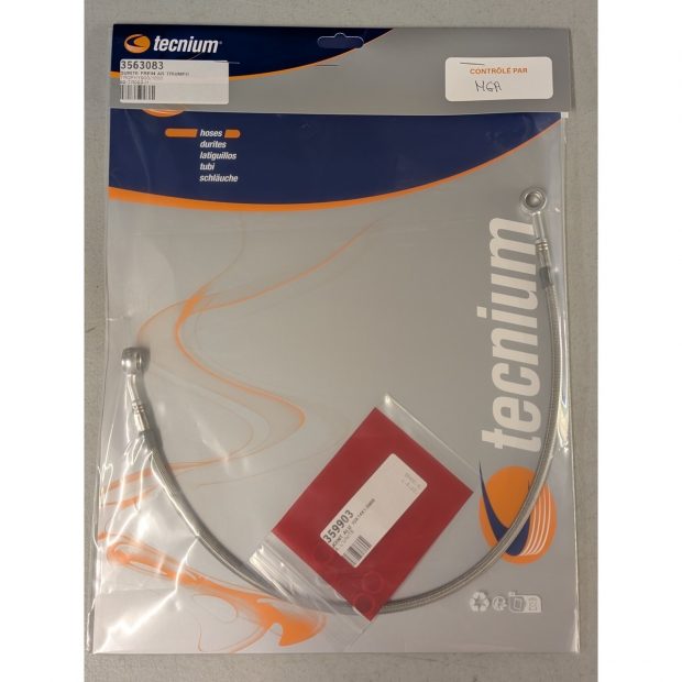 Durite de frein arrière "type aviation" de marque SPEED BRAKES (fabriqué par BIHR - TECNIUM) pour TRIUMPH TROPHY 900 93-96 en montage d'origine.