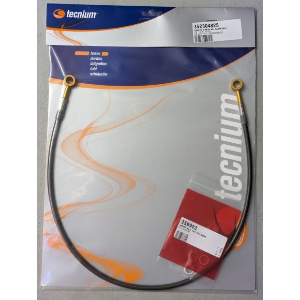 Durite de frein arrière "type aviation" de marque SPEED BRAKES (fabriqué par BIHR - TECNIUM) pour KAWASAKI ZX-12R 00-01 en montage d'origine.