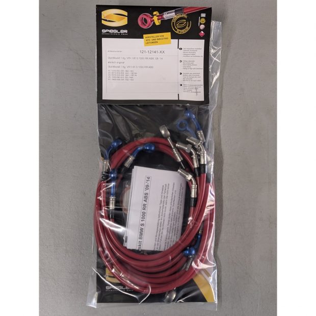 Durites de frein avant + arrière renforcées type aviation de marque SPIEGLER pour BMW S1000RR 09-14 (Type K10) (07 durites avant + arrière - Montage original - Version ABS)
