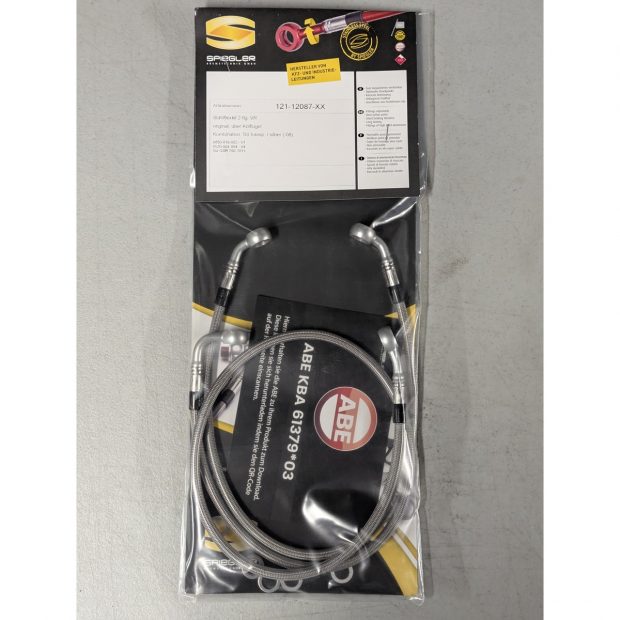 Durites de frein avant renforcées type aviation de marque SPIEGLER pour SUZUKI GSR 750 11-16 (Type WVC5) (02 durites avant - Montage original - sur garde-boue - Version NON ABS)