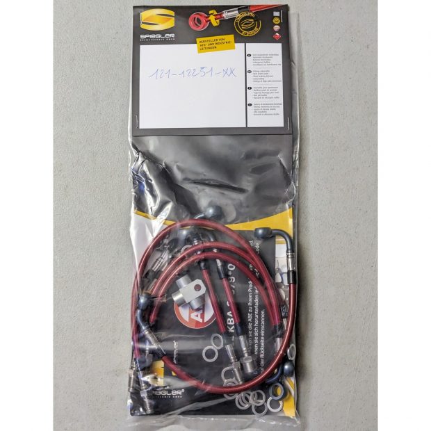 Durites de frein avant + arrière renforcées type aviation de marque SPIEGLER pour BMW K1200 GT 01-03 (Type K12) (06 durites avant + arrière - Montage original - Version ABS)