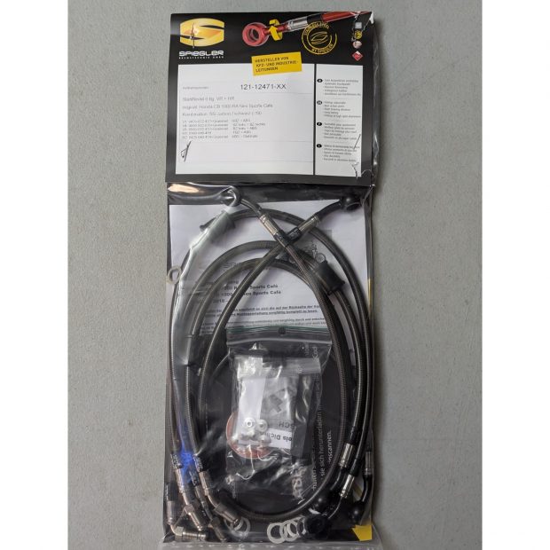 Durites de frein avant + arrière renforcées type aviation de marque SPIEGLER pour HONDA CB1000RA Neo Sports Cafe 18- (Type SC80) (06 durites avant + arrière - Montage original - Version ABS)
