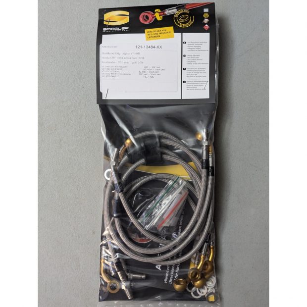 Durites de frein avant + arrière renforcées type aviation de marque SPIEGLER pour HONDA CRF 1000L Africa Twin 18- (Type SD06) (06 durites avant + arrière - Montage original - Version ABS)