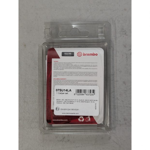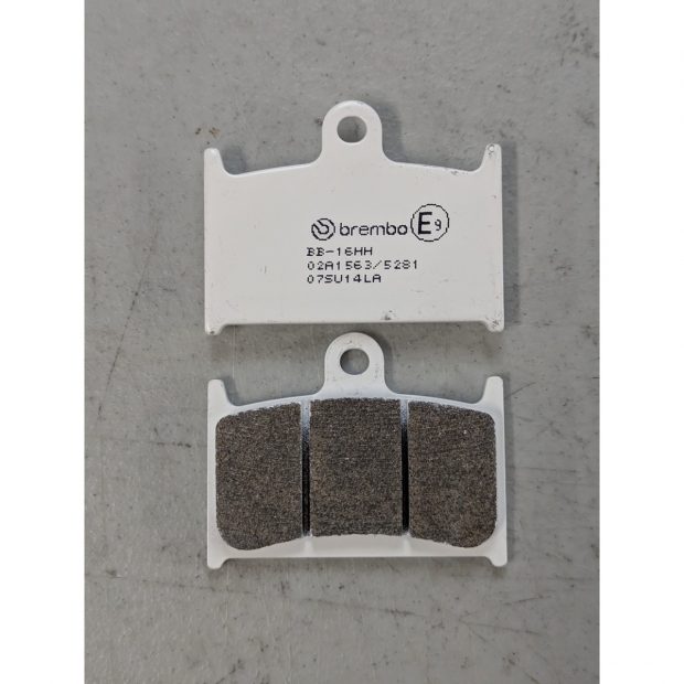 LA : Plaquette de frein BREMBO à monter uniquement à l’avant ; matériel Synther développé pour les motos plus puissantes. Elles sont caractérisées par une efficacité en toutes conditions d’utilisation et une exceptionnelle longévité. Cette plaquette de frein peut fortement réduire le sifflement rencontré avec des plaquettes standard ou l’incompatibilité avec la piste des disques de frein adaptables. Montage avec disques correspondants dont la valeur minimale de l’épaisseur d’utilisation préconisée par le fabricant est contrôlée ; adaptez l’échéance de remplacement le cas échéant. Pour un montage à double disques, il est recommandé de changer les plaquettes de frein des deux étriers en même temps, au même titre que les disques. Si l’usure n’est pas identique des deux côtés, vérifiez l’état des joints et des pistons d’étriers.