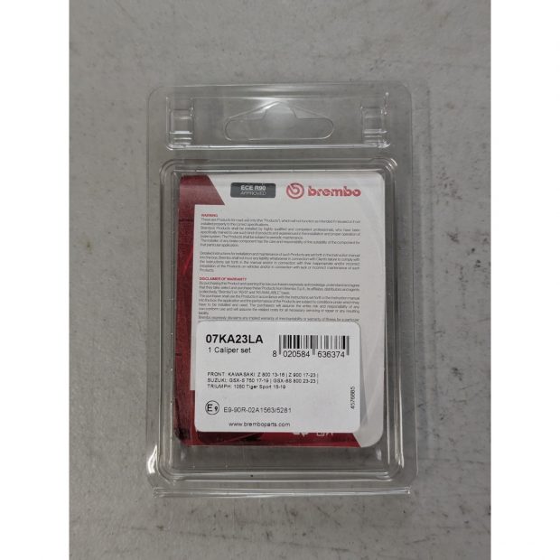 LA : Plaquette de frein BREMBO à monter uniquement à l’avant ; matériel Synther développé pour les motos plus puissantes. Elles sont caractérisées par une efficacité en toutes conditions d’utilisation et une exceptionnelle longévité. Cette plaquette de frein peut fortement réduire le sifflement rencontré avec des plaquettes standard ou l’incompatibilité avec la piste des disques de frein adaptables. Montage avec disques correspondants dont la valeur minimale de l’épaisseur d’utilisation préconisée par le fabricant est contrôlée ; adaptez l’échéance de remplacement le cas échéant. Pour un montage à double disques, il est recommandé de changer les plaquettes de frein des deux étriers en même temps, au même titre que les disques. Si l’usure n’est pas identique des deux côtés, vérifiez l’état des joints et des pistons d’étriers.
