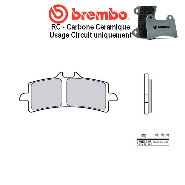 Les plaquettes BREMBO en finition RC sont exclusivement réservées à un usage CIRCUIT - COMPTÉTITION.