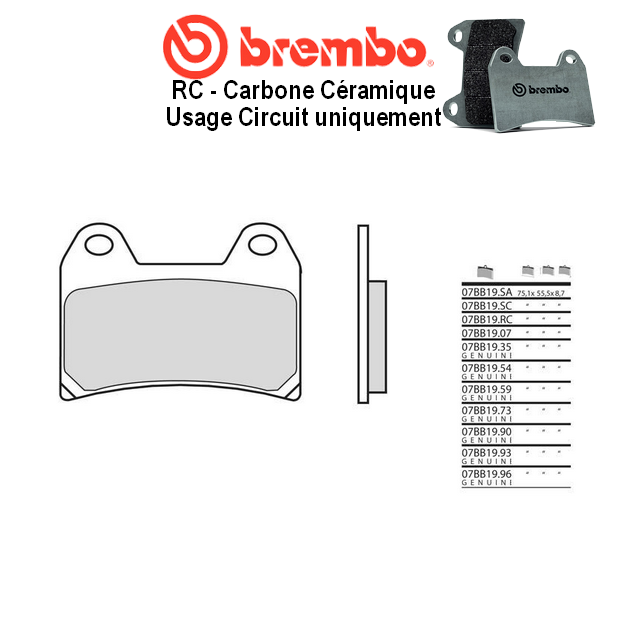 Les plaquettes BREMBO en finition RC sont exclusivement réservées à un usage CIRCUIT - COMPTÉTITION.