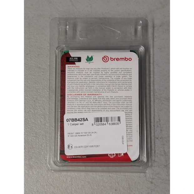 SA veut dire « Sinter Anteriore » en italien, soit « synther pour montage avant » en français ; ce qui signifie que cette plaquette de frein BREMBO fabriquée en matériaux synthérisés est le meilleur compromis pour le remplacement de la plaquette origine pour usage route. Ses composants se caractérisent par un coefficient de friction élevé et constant, démontrent donc une efficacité en toutes conditions d’utilisation, sec ou humide, aussi bien à froid qu’à des températures élevées. De ce fait, la plaquette de frein SA représente la meilleure solution pour une utilisation route standard et une usure modérée ; montage avec disques correspondants dont la valeur minimale de l’épaisseur d’utilisation préconisée par le fabricant est contrôlée ; adaptez l’échéance de remplacement le cas échéant. Pour un montage à double disques, il est recommandé de changer les plaquettes de frein des deux étriers en même temps, au même titre que les disques. Pour une utilisation plus intensive comme les routes sinueuses ou la montagne, vous favoriserez alors la gamme « LA ».