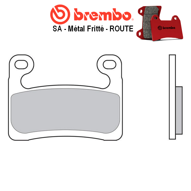 SA veut dire « Sinter Anteriore » en italien, soit « synther pour montage avant » en français ; ce qui signifie que cette plaquette de frein BREMBO fabriquée en matériaux synthérisés est le meilleur compromis pour le remplacement de la plaquette origine pour usage route. Ses composants se caractérisent par un coefficient de friction élevé et constant, démontrent donc une efficacité en toutes conditions d’utilisation, sec ou humide, aussi bien à froid qu’à des températures élevées. De ce fait, la plaquette de frein SA représente la meilleure solution pour une utilisation route standard et une usure modérée ; montage avec disques correspondants dont la valeur minimale de l’épaisseur d’utilisation préconisée par le fabricant est contrôlée ; adaptez l’échéance de remplacement le cas échéant. Pour un montage à double disques, il est recommandé de changer les plaquettes de frein des deux étriers en même temps, au même titre que les disques. Pour une utilisation plus intensive comme les routes sinueuses ou la montagne, vous favoriserez alors la gamme « LA ».