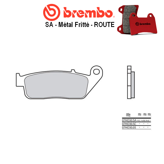 SA veut dire « Sinter Anteriore » en italien, soit « synther pour montage avant » en français ; ce qui signifie que cette plaquette de frein BREMBO fabriquée en matériaux synthérisés est le meilleur compromis pour le remplacement de la plaquette origine pour usage route. Ses composants se caractérisent par un coefficient de friction élevé et constant, démontrent donc une efficacité en toutes conditions d’utilisation, sec ou humide, aussi bien à froid qu’à des températures élevées. De ce fait, la plaquette de frein SA représente la meilleure solution pour une utilisation route standard et une usure modérée ; montage avec disques correspondants dont la valeur minimale de l’épaisseur d’utilisation préconisée par le fabricant est contrôlée ; adaptez l’échéance de remplacement le cas échéant. Pour un montage à double disques, il est recommandé de changer les plaquettes de frein des deux étriers en même temps, au même titre que les disques. Pour une utilisation plus intensive comme les routes sinueuses ou la montagne, vous favoriserez alors la gamme « LA ».