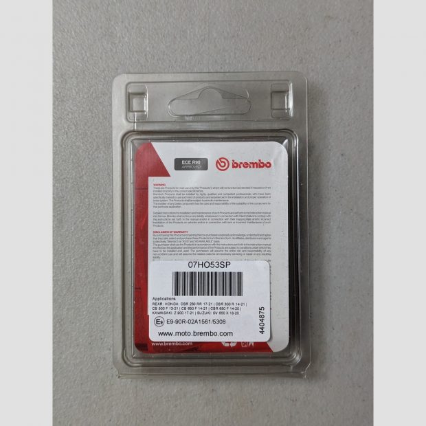 SP veut dire « Sinter Posteriore » en italien, soit « synther pour montage arrière » en français ; ce qui signifie que cette plaquette de frein BREMBO fabriquée en matériaux synthérisés est le meilleur compromis pour le remplacement de la plaquette origine pour usage route. Ses composants se caractérisent par un coefficient de friction élevé et constant, démontrent donc une efficacité en toutes conditions d’utilisation, sec ou humide, stable aussi bien à froid qu’à des températures élevées. De ce fait, la plaquette de frein SP représente la meilleure solution pour une utilisation route standard et une usure modérée ; montage avec disques correspondants dont la valeur minimale de l’épaisseur d’utilisation préconisée par le fabricant est contrôlée ; adaptez l’échéance de remplacement le cas échéant.