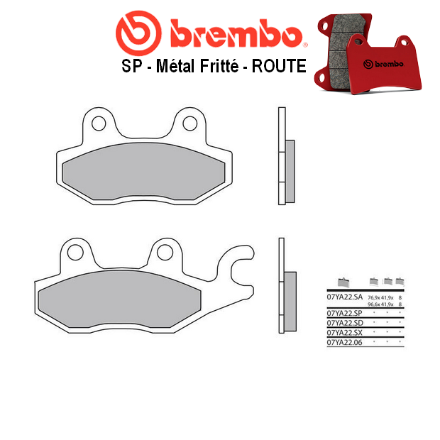 SP veut dire « Sinter Posteriore » en italien, soit « synther pour montage arrière » en français ; ce qui signifie que cette plaquette de frein BREMBO fabriquée en matériaux synthérisés est le meilleur compromis pour le remplacement de la plaquette origine pour usage route. Ses composants se caractérisent par un coefficient de friction élevé et constant, démontrent donc une efficacité en toutes conditions d’utilisation, sec ou humide, stable aussi bien à froid qu’à des températures élevées. De ce fait, la plaquette de frein SP représente la meilleure solution pour une utilisation route standard et une usure modérée ; montage avec disques correspondants dont la valeur minimale de l’épaisseur d’utilisation préconisée par le fabricant est contrôlée ; adaptez l’échéance de remplacement le cas échéant.