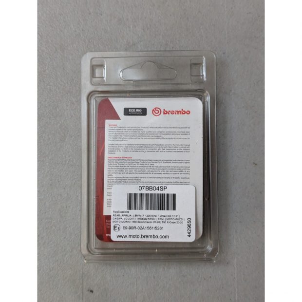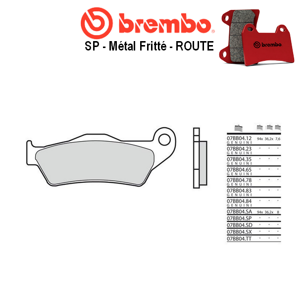 SP veut dire « Sinter Posteriore » en italien, soit « synther pour montage arrière » en français ; ce qui signifie que cette plaquette de frein BREMBO fabriquée en matériaux synthérisés est le meilleur compromis pour le remplacement de la plaquette origine pour usage route. Ses composants se caractérisent par un coefficient de friction élevé et constant, démontrent donc une efficacité en toutes conditions d’utilisation, sec ou humide, stable aussi bien à froid qu’à des températures élevées. De ce fait, la plaquette de frein SP représente la meilleure solution pour une utilisation route standard et une usure modérée ; montage avec disques correspondants dont la valeur minimale de l’épaisseur d’utilisation préconisée par le fabricant est contrôlée ; adaptez l’échéance de remplacement le cas échéant.